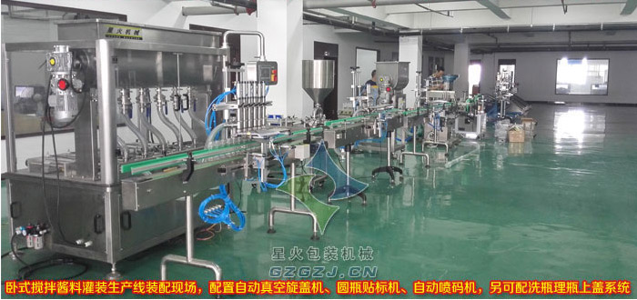 星火集團(tuán)擁有雄厚的專業(yè)技術(shù)力量和高級的資深售后服務(wù)人員,多年來產(chǎn)品不斷創(chuàng)新,以完善的售后服務(wù)體系和專業(yè)的技術(shù)服務(wù)力量使我們有信心成為行業(yè)的先鋒。針對辣椒醬等醬料行業(yè)需求,研制了一系列單頭、雙頭、多頭立式攪拌醬料灌裝機(jī)、單頭雙頭臥式攪拌灌裝機(jī)、此次針對有臥式攪拌、且適合生產(chǎn)線工作需求的6頭、12頭臥式攪拌醬料灌裝機(jī),大大提升了企業(yè)灌裝包裝方面的效率。