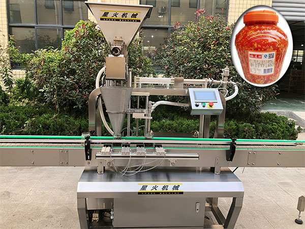 河南新鄉(xiāng)剁椒醬灌裝生產(chǎn)線實(shí)拍圖